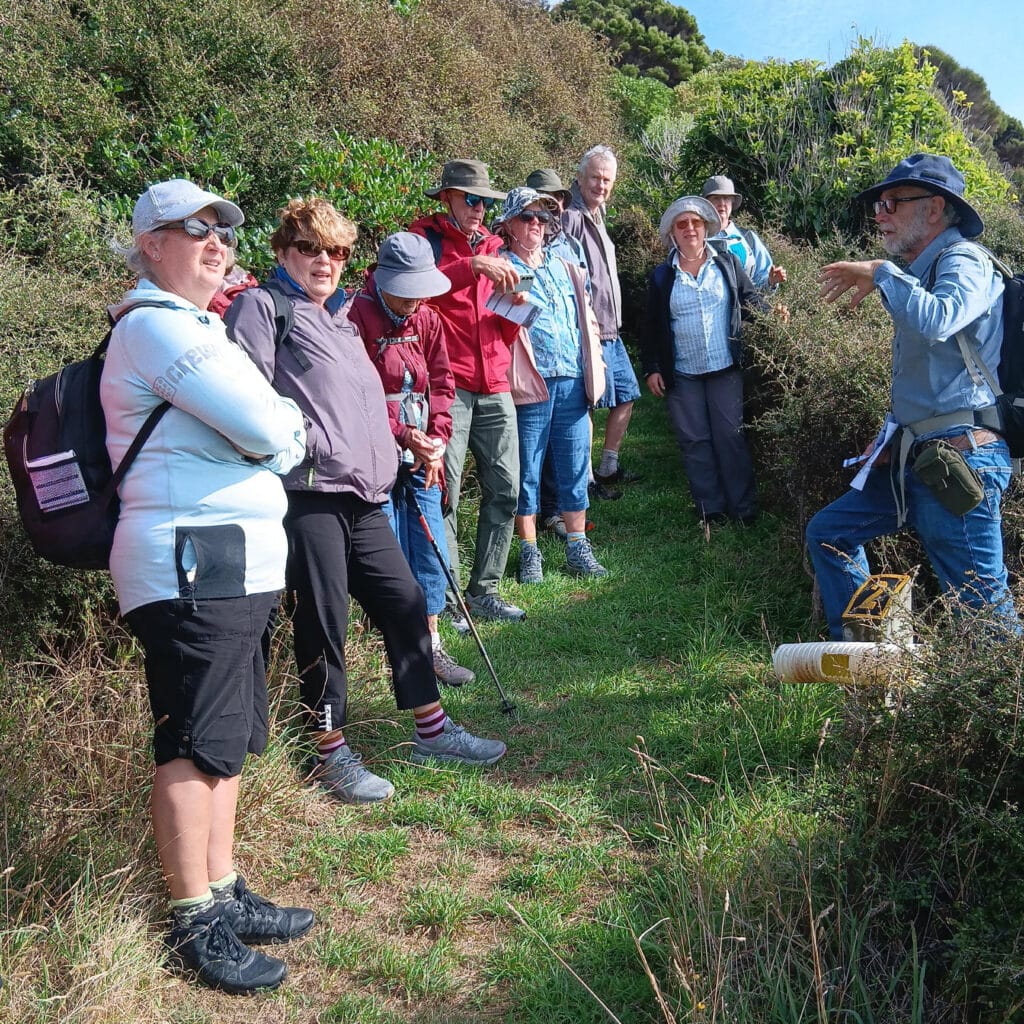 A group of 26 A Rocha Wellington members had a great day on Mana Island on 14 Feb 2026. The group included some knowledgeable people, who provided a great commentary – our guide, Peter Kiernan (on the right in the photo above), who volunteered on the island for a few years doing lizard work, another couple who had volunteered for flax weevil management, and some Forest and Bird members who were able to provide extra background on the revegetation of the island once farming ceased in 1986.