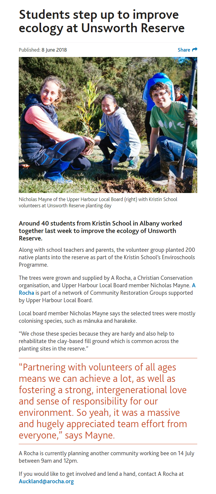A Rocha Aotearoa New Zealand is currently being featured as the WWF case study on The Tindall Foundation (TTF) website. WWF is the Local Donation Manager for TTF focusing on the Environment area.