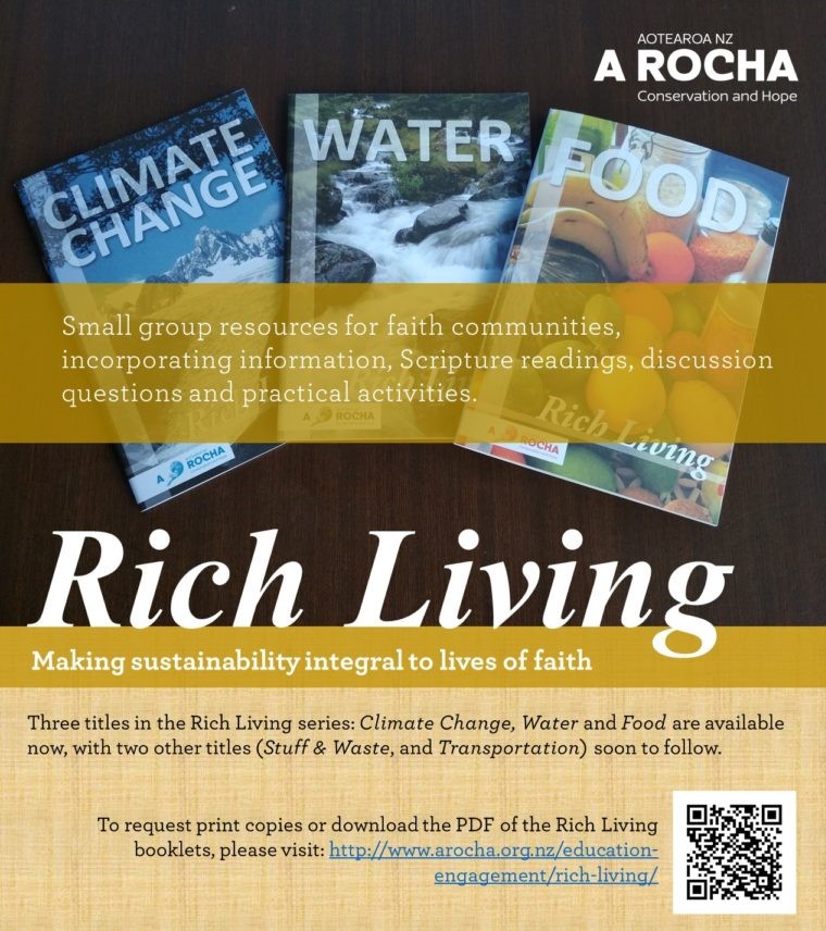 Evidence that contemporary human consumption habits are unsustainable and that existing Western ‘lifestyles’ have a detrimental affect on ecosystems, thus negatively affecting the lives of our neighbours (both human and non-human), is overwhelming. However, rather than believing that nothing can change, Christians are to be agents of hope. We believe that Christian faith communities have the potential to offer a glimpse of what true “rich living” entails. A Rocha has partnered with Tearfund NZ to create the Rich Living series – to assist faith communities to reflect upon how they live and offers practical steps to make sustainability integral to lives of faith.